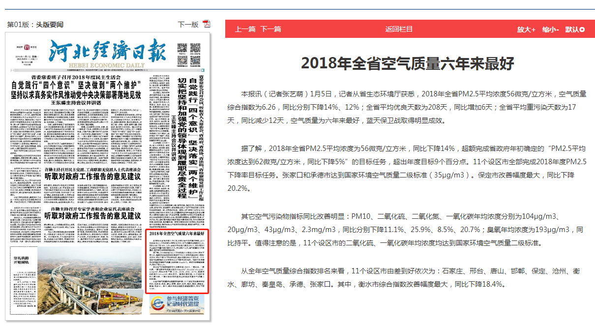 河北经济日报:2018年全省空气质量六年来最好