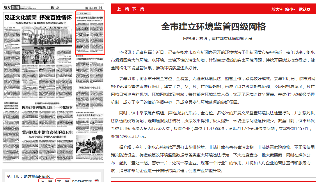 河北日报:全市建立环境监管四级网格