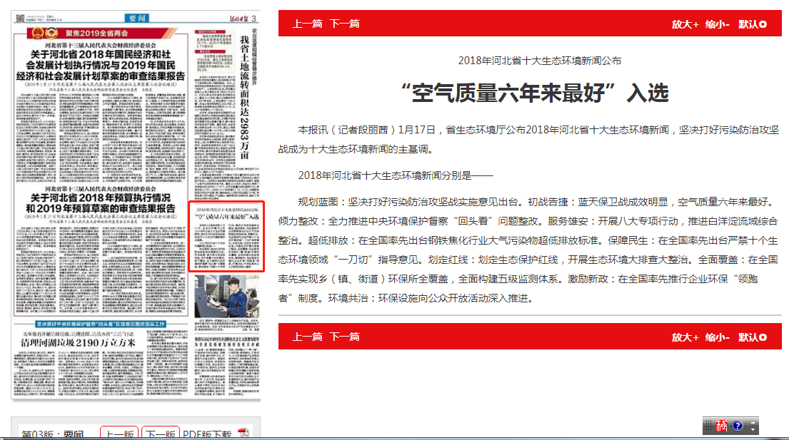 河北日报:2018年河北省十大生态环境新闻公布 “空气质量六年来最好”入选