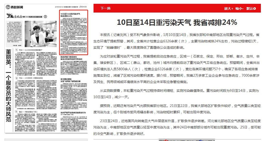 燕赵都市报:10日至14日重污染天气 我省减排24%