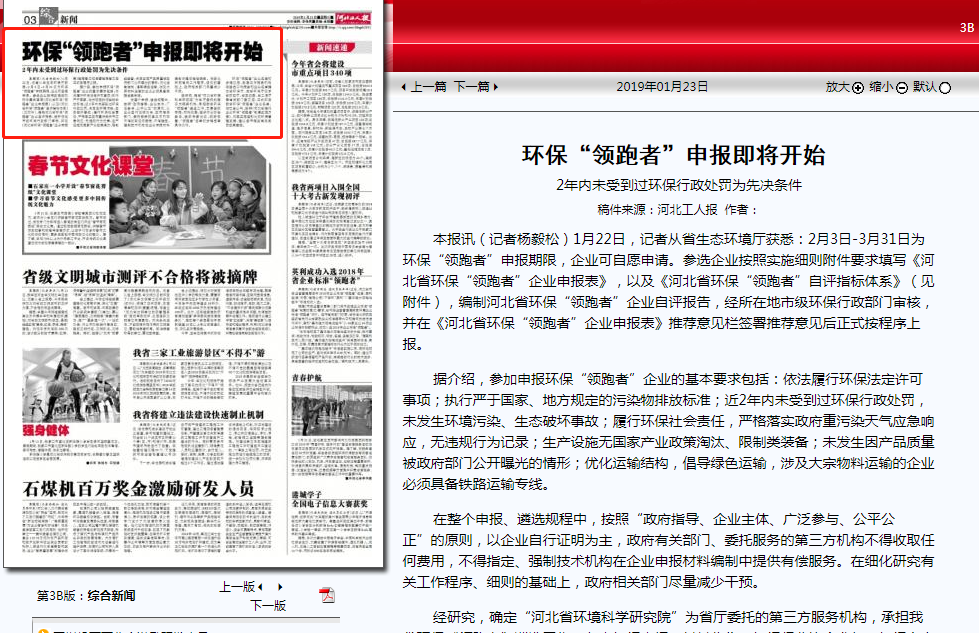 河北工人报:河北省:环保“领跑者”申报即将开始