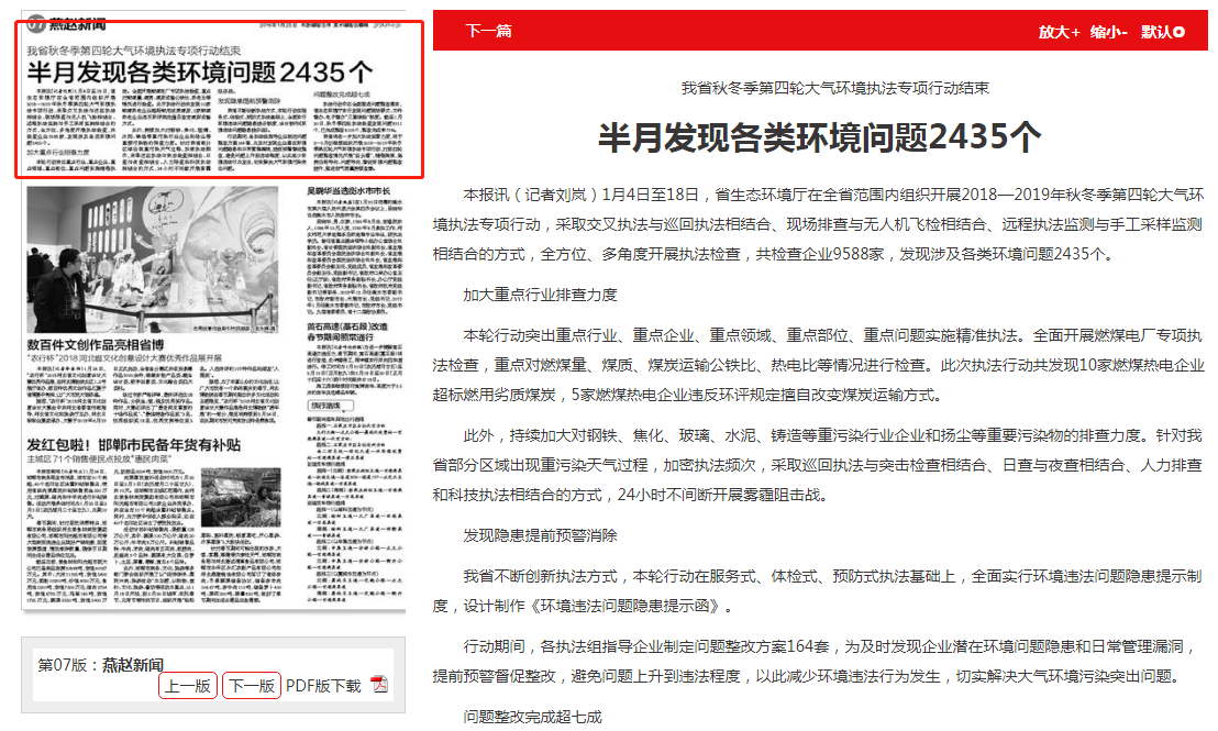 燕赵都市报:我省秋冬季第四轮大气环境执法专项行动结束 半月发现各类环境问题2435个