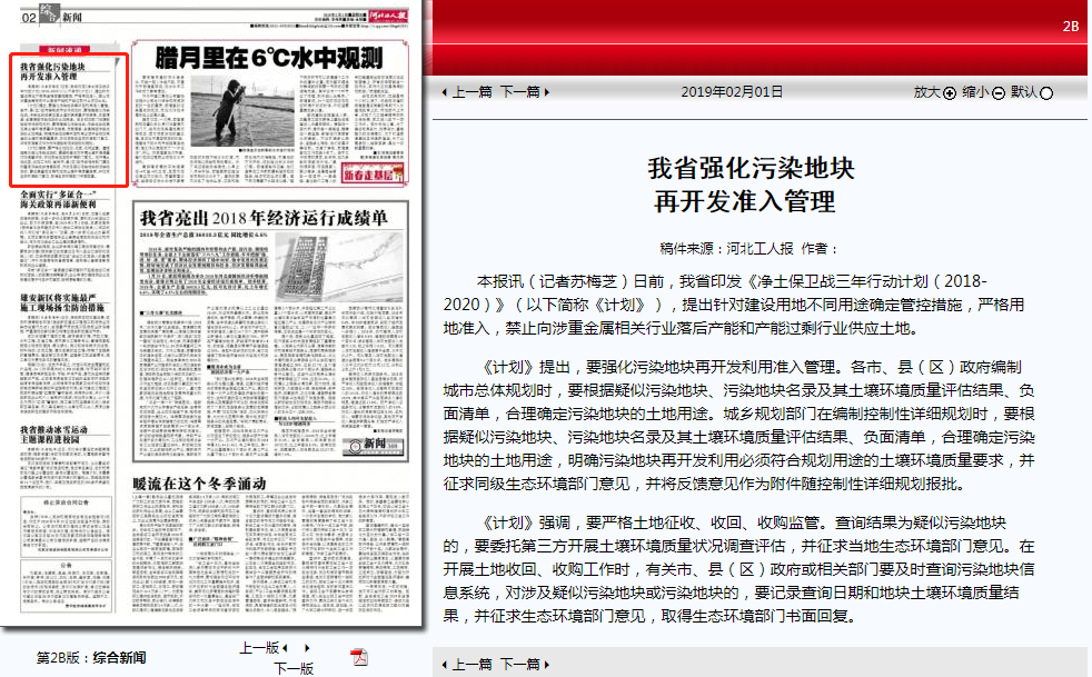 河北工人报:我省强化污染地块再开发准入管理
