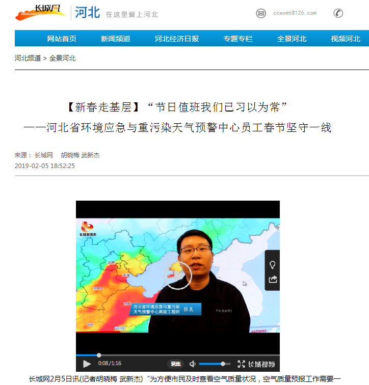 长城网:河北省环境应急与重污染天气预警中心员工春节坚守一线