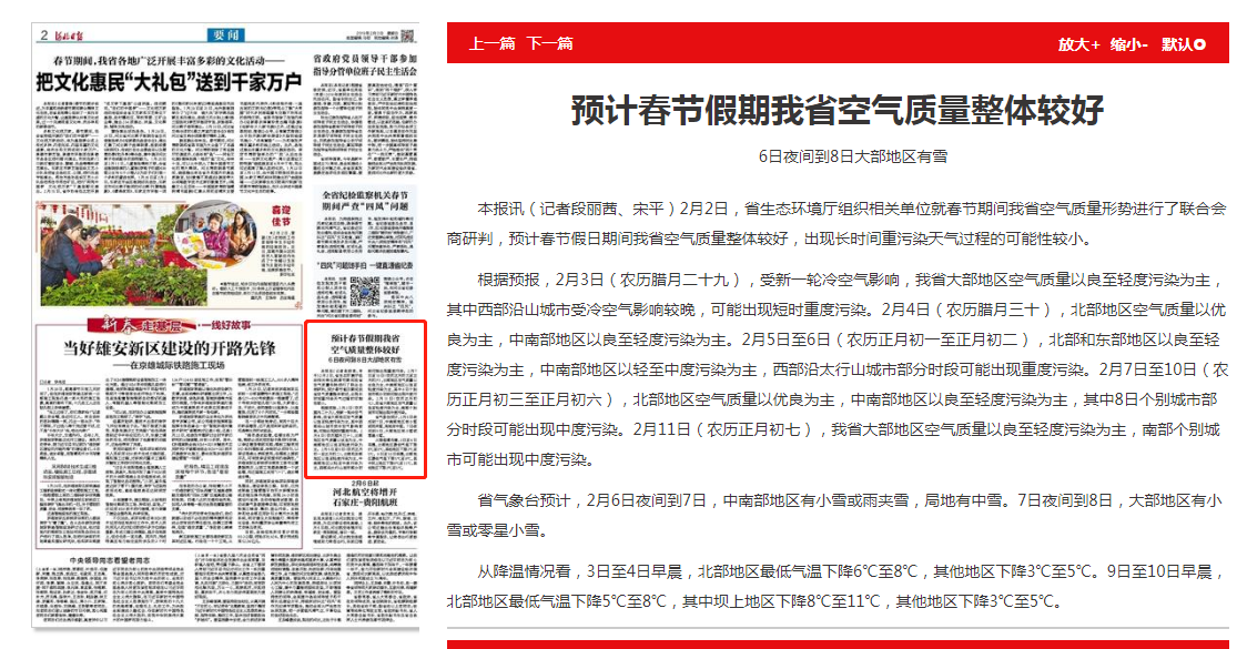 本报讯(记者段丽茜、宋平)2月2日,杏彩(中国)官方网站 组织相关单位就春节期间我省空气质量形势进行了联合会商研判,预计春节假日期间我省空气质量整体较好,出现长时间重污染天气过程的可能性较小。
