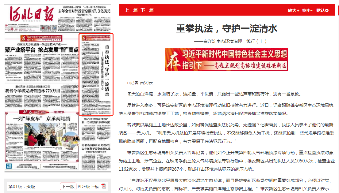 河北日报:重拳执法,守护一淀清水 ——白洋淀生态环境治理一线行(上)