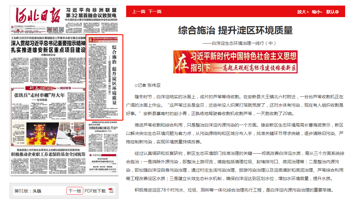 河北日报:综合施治 提升淀区环境质量 ——白洋淀生态环境治理一线行(中)