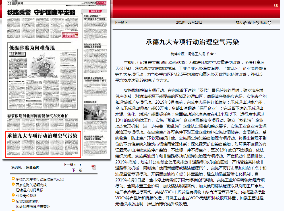 河北工人报:承德九大专项行动治理空气污染 来源:省生态环境宣传教育中心 时间:2019-02-13