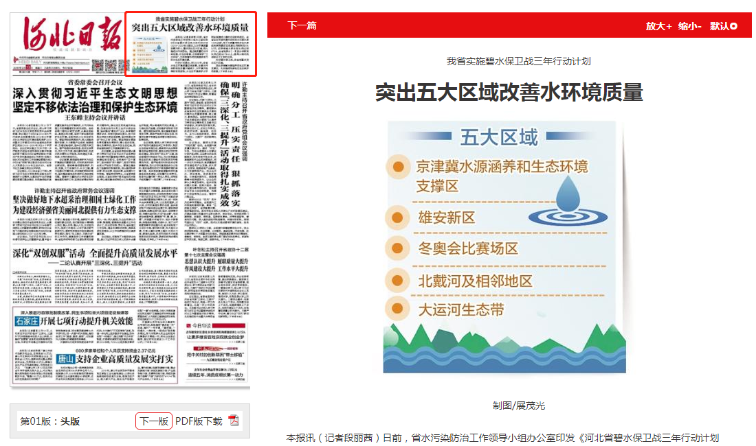 河北日报:我省实施碧水保卫战三年行动计划 突出五大区域改善水环境质量