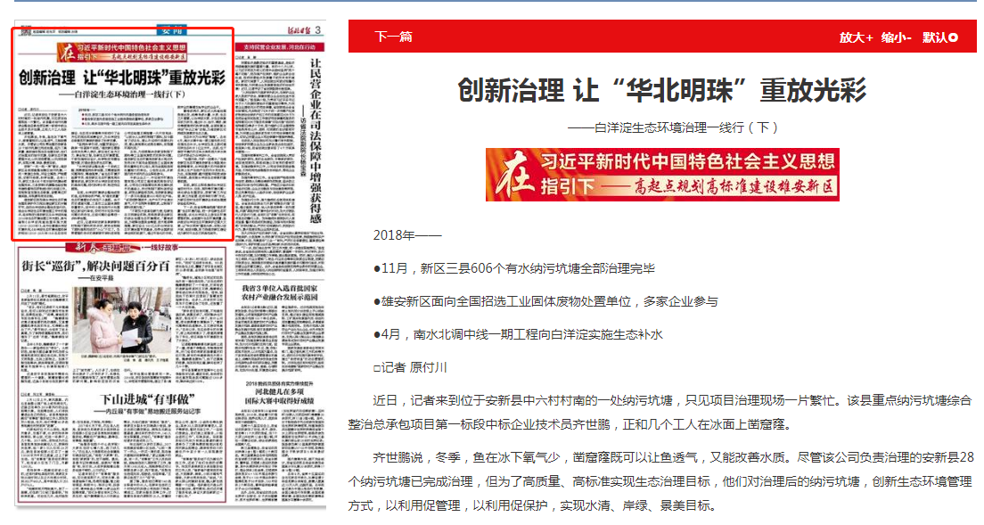 河北日报:创新治理 让“华北明珠”重放光彩——白洋淀生态环境治理一线行(下)