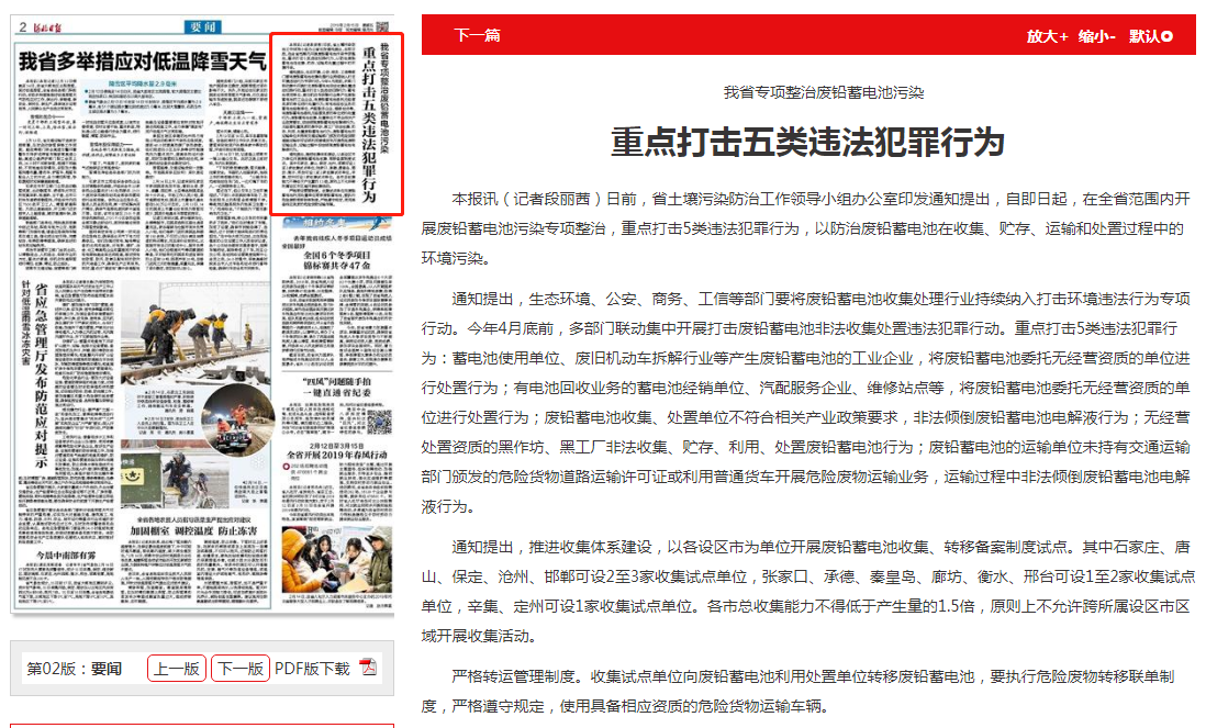 河北日报:我省专项整治废铅蓄电池污染 重点打击五类违法犯罪行为