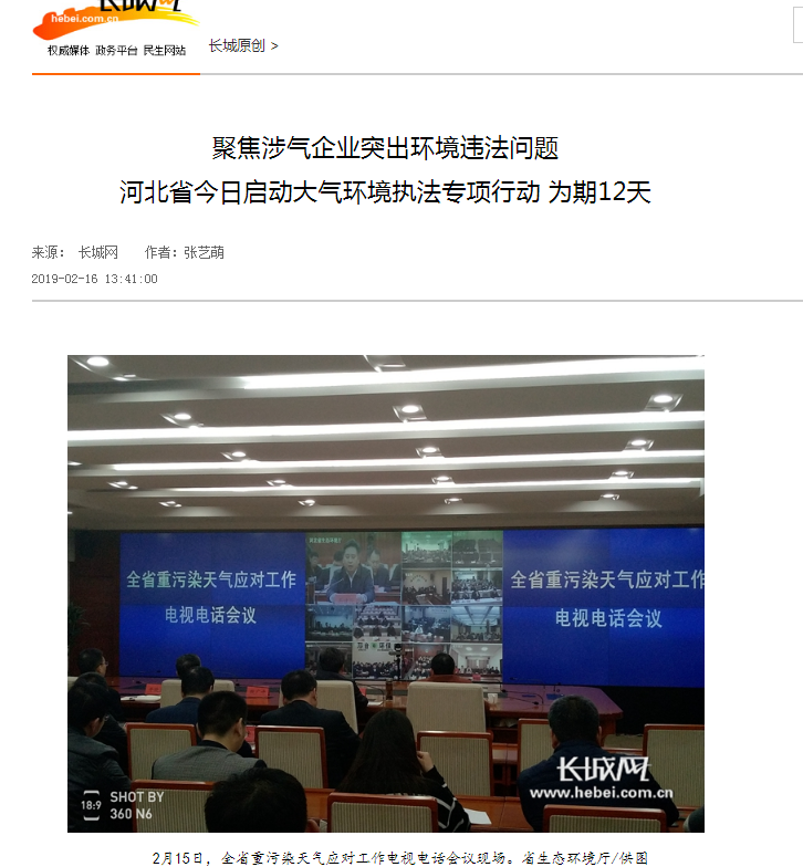 长城网:聚焦涉气企业突出环境违法问题 河北省今日启动大气环境执法专项行动 为期12天