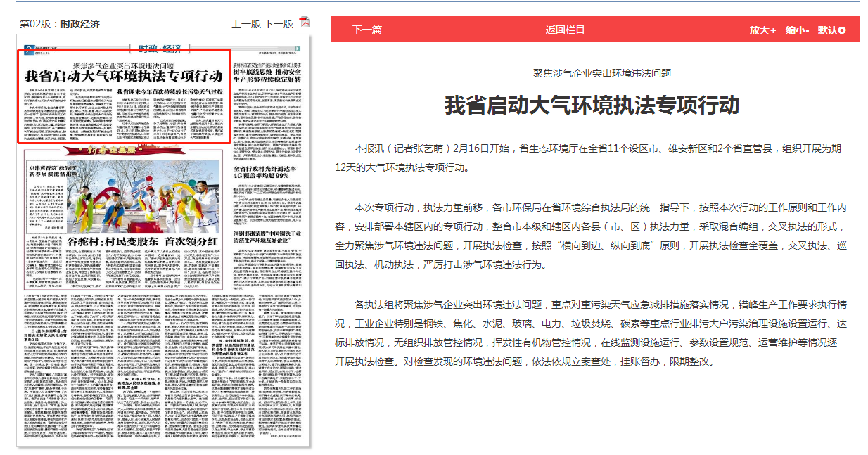 本报讯(记者张艺萌)2月16日开始,杏彩(中国)官方网站 在全省11个设区市、雄安新区和2个省直管县,组织开展为期12天的大气环境执法专项行动。