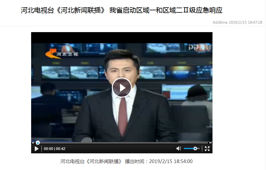 河北电视台《河北新闻联播》:我省启动区域一和区域二Ⅱ级应急响应