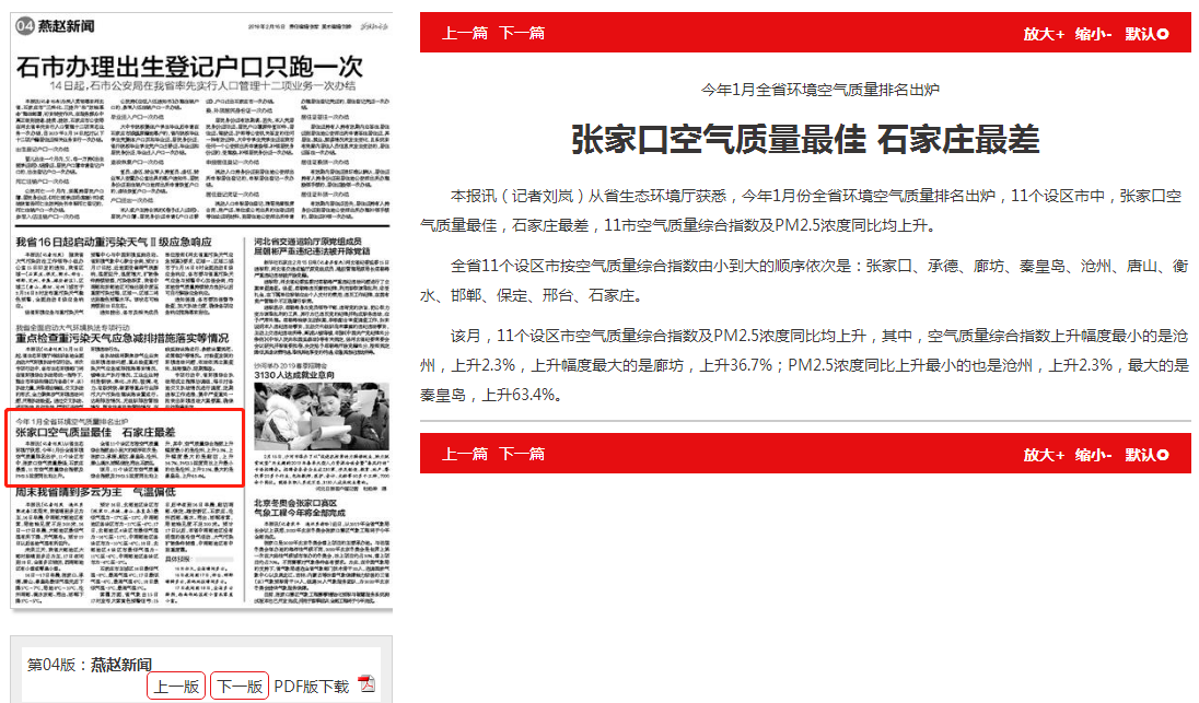 本报讯(记者刘岚)从杏彩(中国)官方网站 获悉,今年1月份全省环境空气质量排名出炉,11个设区市中,张家口空气质量最佳,石家庄最差,11市空气质量综合指数及PM2.5浓度同比均上升。