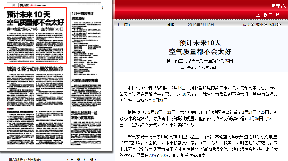燕赵晚报:预计未来10天空气质量都不会太好