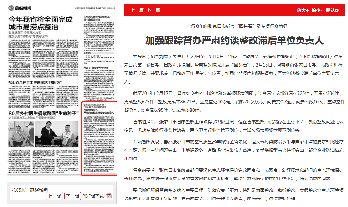 燕赵都市报:督察组向张家口市反馈“回头看”及专项督察情况 加强跟踪督办严肃约谈整改滞后单位负责人