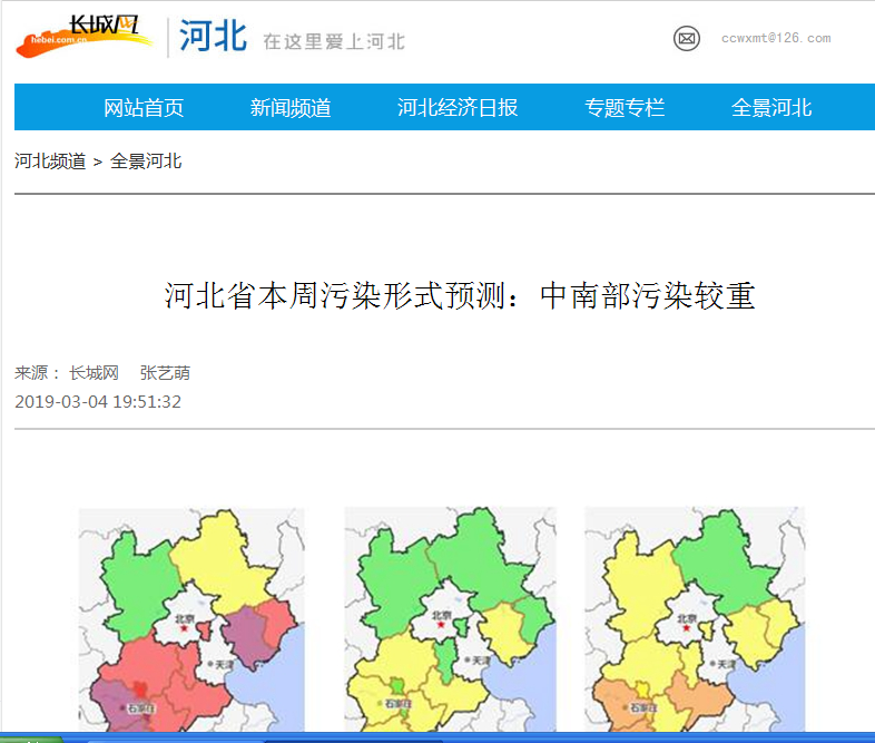 长城网:河北省本周污染形式预测:中南部污染较重