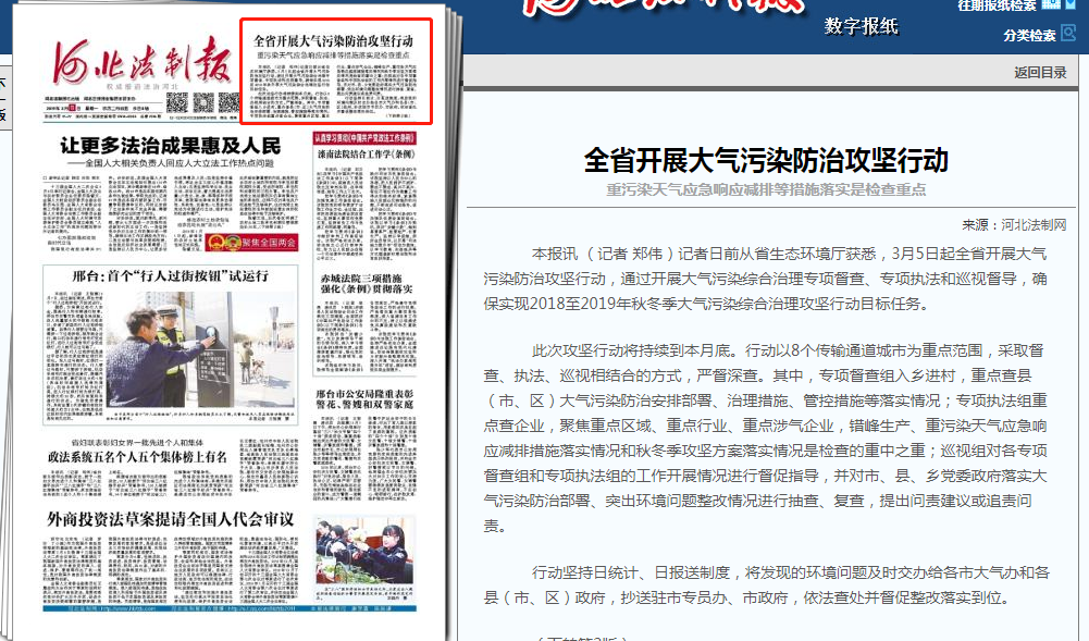 获悉,3月5日起全省开展大气污染防治攻坚行动,通过开展大气污染综合治理专项督查、专项执法和巡视督导,确保实现2018至2019年秋冬季大气污染综合治理攻坚行动目标任务。