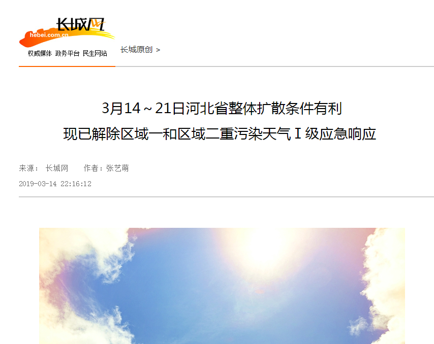 长城网3月14日讯(记者 张艺萌)3月13日,杏彩(中国)官方网站 发布解除区域一和区域二重污染天气Ⅰ级应急响应的通知。