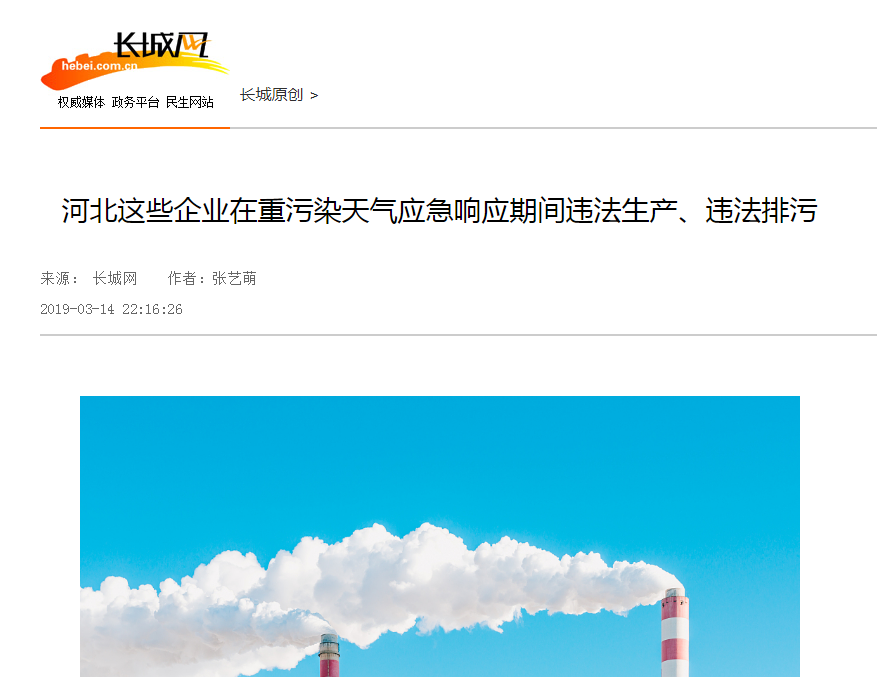 长城网3月14日讯(记者 张艺萌)近期,全省大气污染防治形势十分严峻,受重污染天气影响,全省大气污染传输通道地区启动了重污染天气红色预警和相应的应急响应措施。为严厉打击涉气环境违法行为,推进空气质量持续改善,杏彩(中国)官方网站 于2019年3月5日起,在全省范围内启动第五轮大气环境执法专项行动,执法检查发现,部分企业违反《中华人民共和国大气污染防治法》等法律法规,重污染天气预警期间,未严格落实应急响应减排措施,违法生产、违法排污。