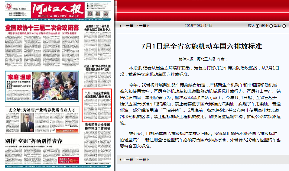获悉,为着力打好机动车污染防治攻坚战,从7月1日起,我省将实施机动车国六排放标准。 今年,我省将开展柴油货车污染综合治理,严格新生产机动车和非道路移动机械准入和使用管控,严厉查处机动车和非道路移动机械超标排放行为。严厉打击生产、销售劣质油品、车用尿素行为,坚决取缔黑加油站(点)。今年1月1日起,全省已经开始供应国六标准车用汽柴油,禁止销售低于国六标准的汽柴油,实现了车用柴油、普通柴油、部分船舶用油“三油并轨”。6月底前,各地将划定并公布禁止使用高排放非道路移动机械区域,禁止超标排放工程机械使用。加快调整运输结构,推动公路转铁路运输。 据介绍,自机动车国六排放标准实施之日起,我省禁止销售不符合国六排放标准的轻型汽车,新注册登记轻型汽车必须符合国六排放标准,外省转入我省的轻型汽车也要符合国六标准。