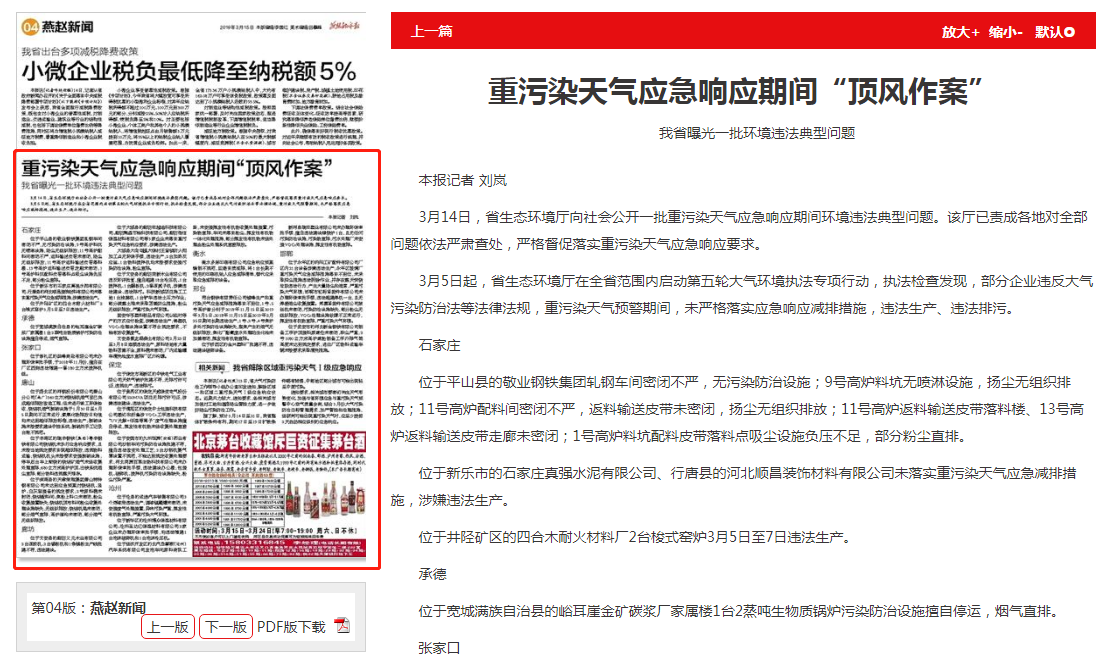 位于新乐市的石家庄真强水泥有限公司、行唐县的河北顺昌装饰材料有限公司未落实重污染天气应急减排措施,涉嫌违法生产。