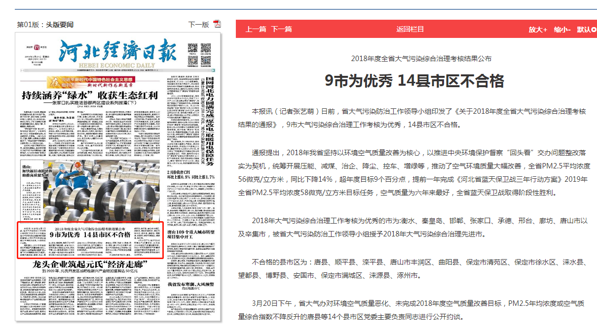 3月20日下午,省大气办对环境空气质量恶化、未完成2018年度空气质量改善目标,PM2.5年均浓度或空气质量综合指数不降反升的唐县等14个县市区党委主要负责同志进行公开约谈。