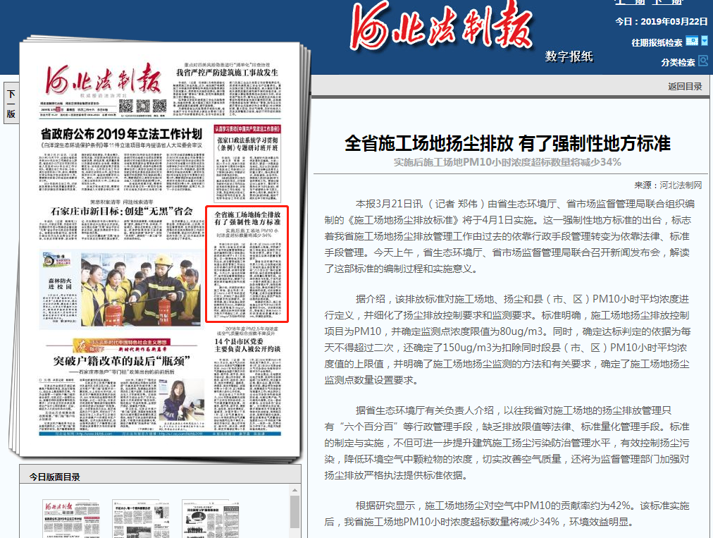 、省市场监督管理局联合召开新闻发布会,解读了这部标准的编制过程和实施意义。 据介绍,该排放标准对施工场地、扬尘和县(市、区)PM10小时平均浓度进行定义,并细化了扬尘排放控制要求和监测要求。标准明确,施工场地扬尘排放控制项目为PM10,并确定监测点浓度限值为80ug/m3。同时,确定达标判定的依据为每天不得超过二次,还确定了150ug/m3为扣除同时段县(市、区)PM10小时平均浓度值的上限值,并明确了施工场地扬尘监测的方法和有关要求,确定了施工场地扬尘监测点数量设置要求。 据杏彩(中国)官方网站