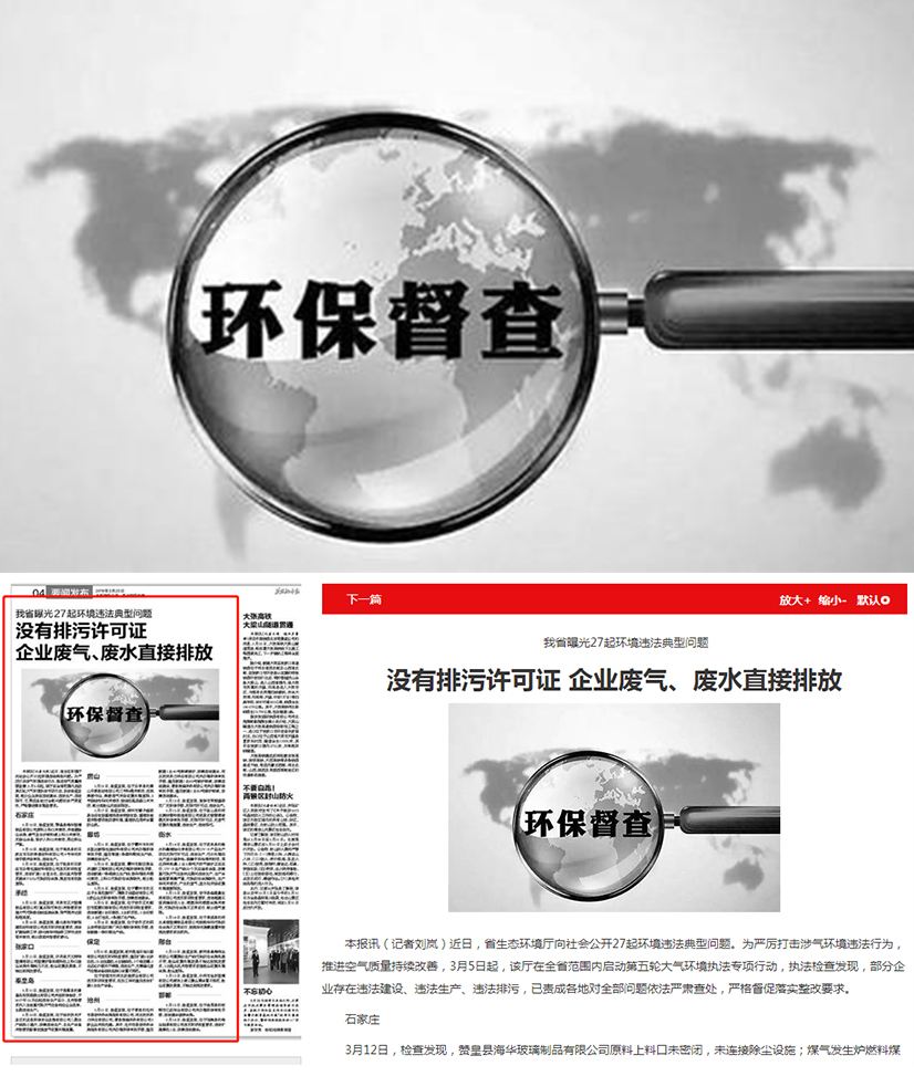 3月10日,检查发现,平泉市正大玻璃制品有限公司(重点排污单位)未按要求安装大气污染物在线监测设施,排气筒未达到标准高度。