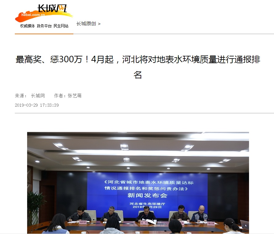 长城网3月29日讯(记者张艺萌)近日,中共河北省委办公厅、河北省人民政府办公厅印发了《河北省城市地表水环境质量达标情况通报排名和奖惩问责办法(试行)》,《办法》指出,实行奖惩问责机制。从2019年4月1日起,河北省将对月度排名第1位至第3位的市,分别奖励300万元、200万元、100万元;对月度倒排第1位至第3位的市,分别扣减300万元、200万元、100万元。月度排名位列第4至第8位的市,不奖不惩。达标指数为100%的市只奖不惩。