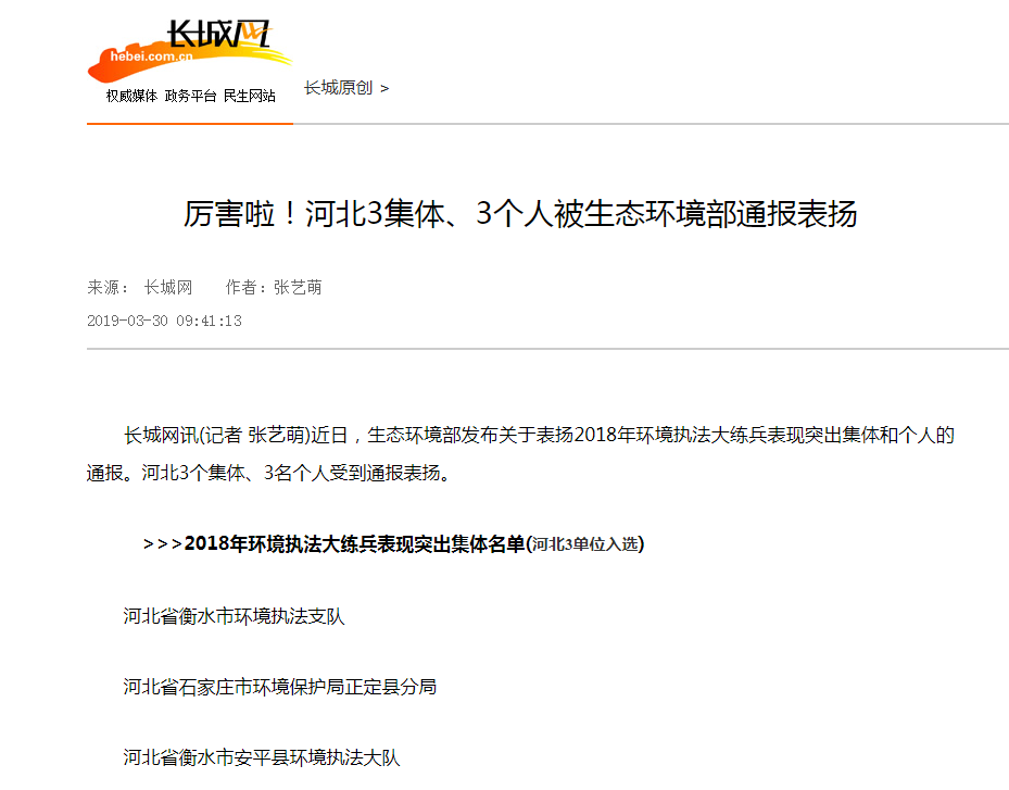 >>>2018年环境执法大练兵表现突出集体名单(河北3单位入选)