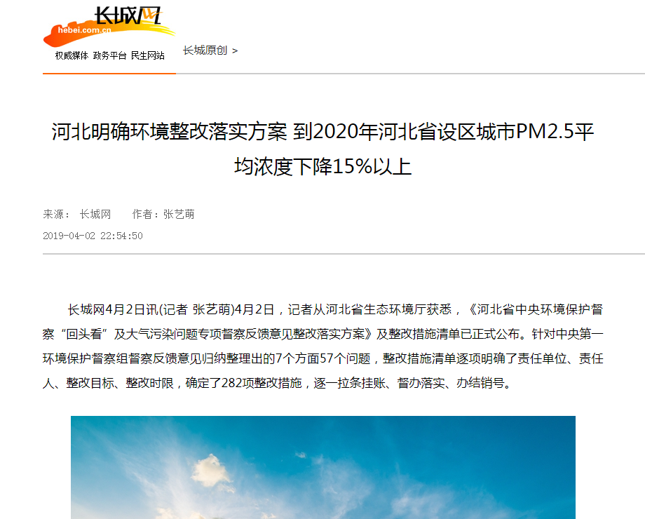 长城网4月2日讯(记者 张艺萌)4月2日,记者从杏彩(中国)官方网站 获悉,《河北省中央环境保护督察“回头看”及大气污染问题专项督察反馈意见整改落实方案》及整改措施清单已正式公布。针对中央第一环境保护督察组督察反馈意见归纳整理出的7个方面57个问题,整改措施清单逐项明确了责任单位、责任人、整改目标、整改时限,确定了282项整改措施,逐一拉条挂账、督办落实、办结销号。