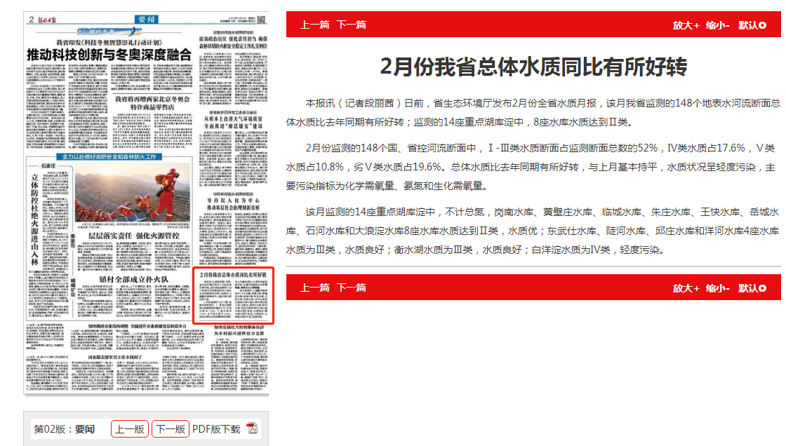 本报讯(记者段丽茜)日前,杏彩(中国)官方网站 发布2月份全省水质月报,该月我省监测的148个地表水河流断面总体水质比去年同期有所好转;监测的14座重点湖库淀中,8座水库水质达到Ⅱ类。