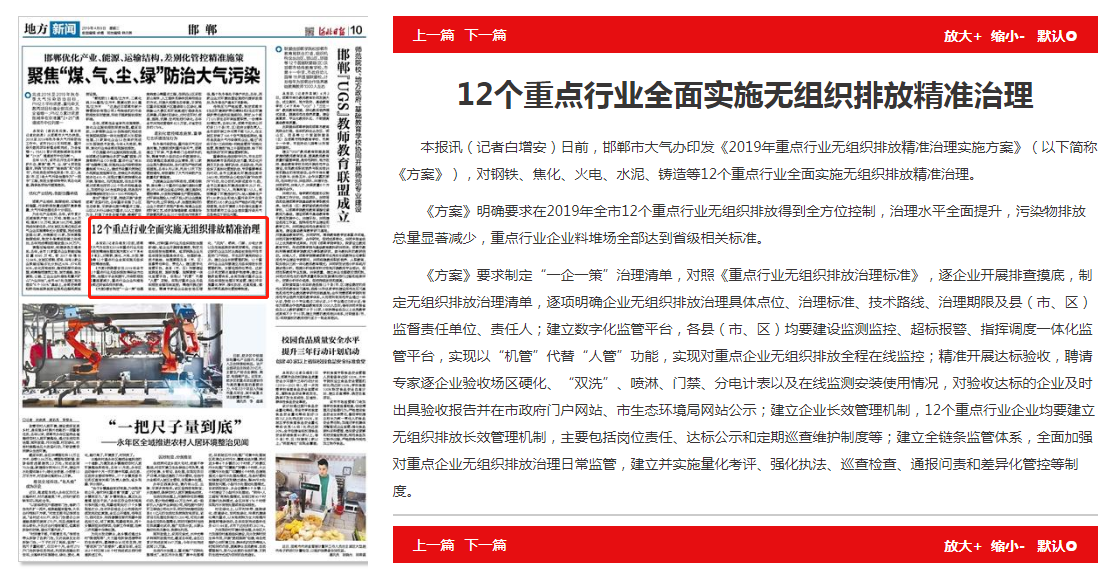 河北日报:邯郸市12个重点行业全面实施无组织排放精准治理
