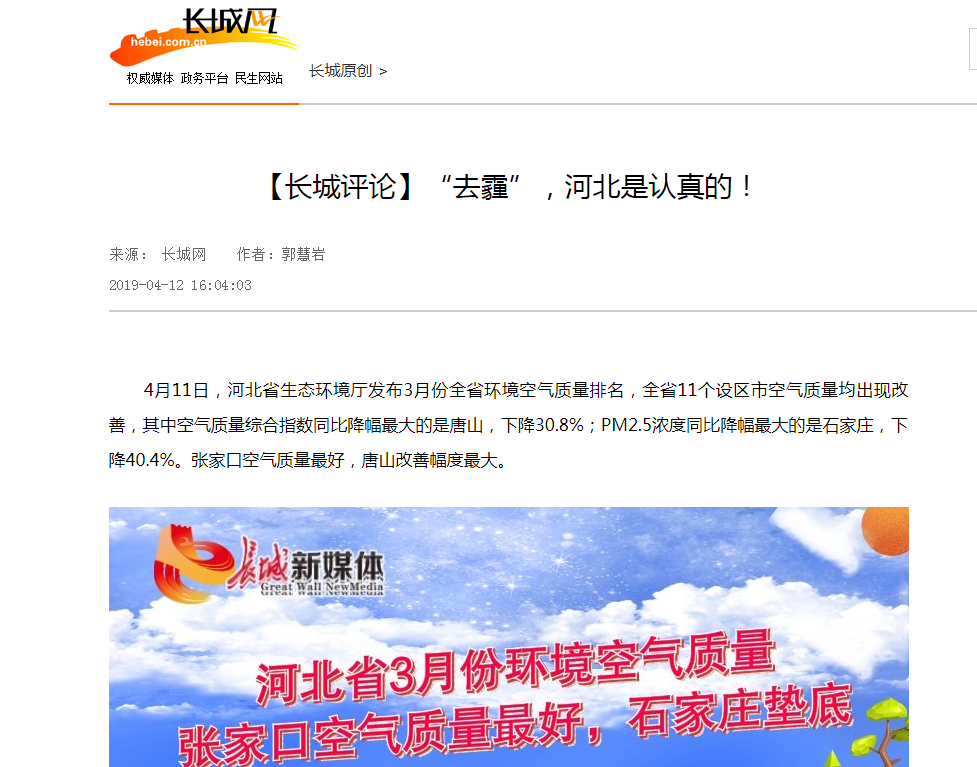 其实,不只是3月份,河北在近些年空气质量都有相当程度地改善。2018年4月,杏彩对全国2个省份的环境执法工作予以表扬,河北省是其中之一,这是对河北环保治理成效的充分肯定。