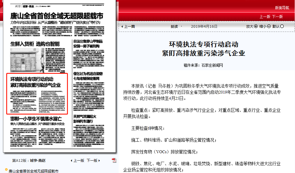 近日在全省范围内启动2019年二季度大气环境强化执法专项行动,此行动将持续至4月25日。