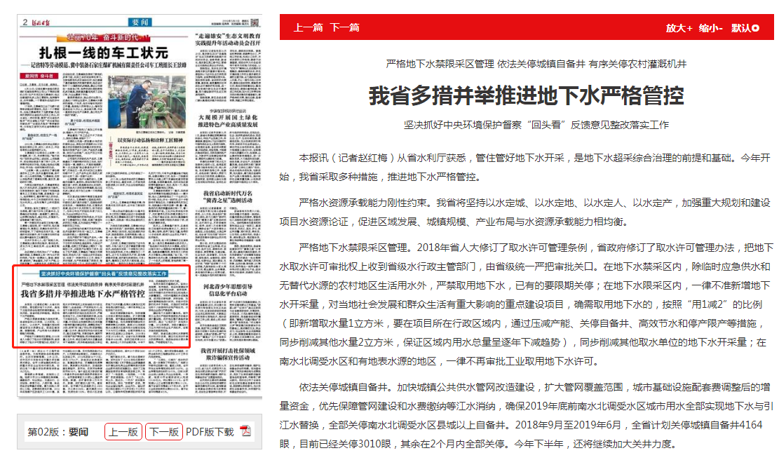 同时,我省还通过深化水资源税和水权水价改革,建立引足用好外调水的政策体系,推进依法治水管水等措施,严格管控地下水。