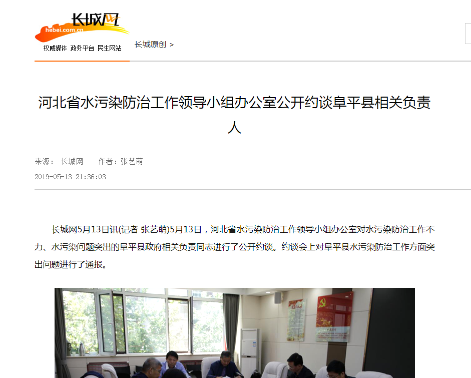 长城网5月13日讯(记者 张艺萌)5月13日,河北省水污染防治工作领导小组办公室对水污染防治工作不力、水污染问题突出的阜平县政府相关负责同志进行了公开约谈。约谈会上对阜平县水污染防治工作方面突出问题进行了通报。