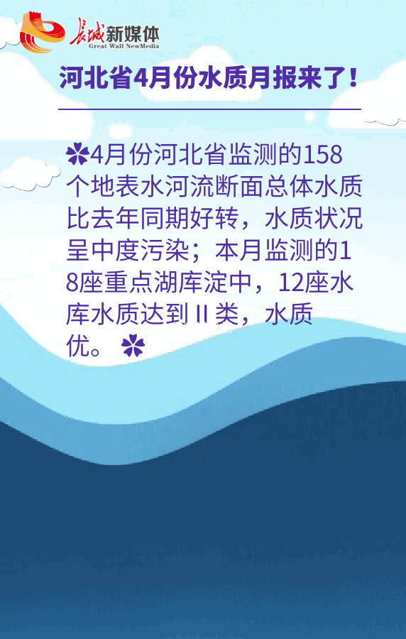 长城网:河北省4月份水质月报来了!158个地表水河流断面总体水质比去年同期好转
