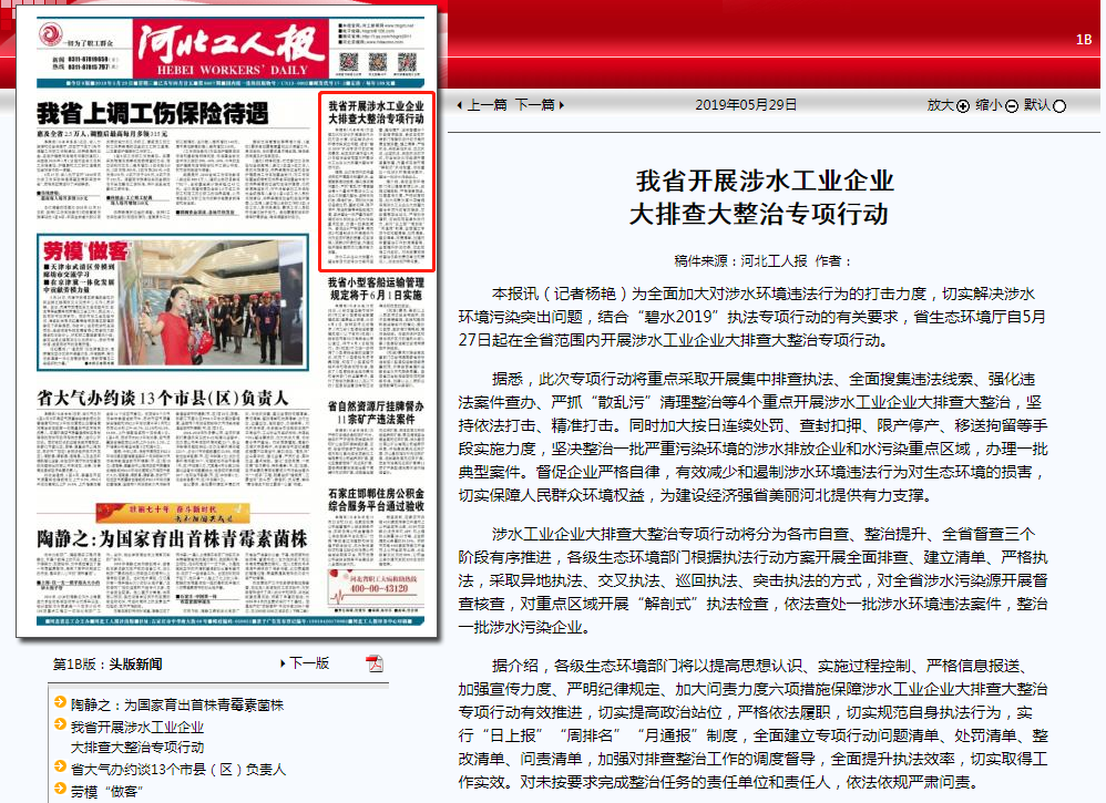 自5月27日起在全省范围内开展涉水工业企业大排查大整治专项行动。 据悉,此次专项行动将重点采取开展集中排查执法、全面搜集违法线索、强化违法案件查办、严抓“散乱污”清理整治等4个重点开展涉水工业企业大排查大整治,坚持依法打击、精准打击。同时加大按日连续处罚、查封扣押、限产停产、移送拘留等手段实施力度,坚决整治一批严重污染环境的涉水排放企业和水污染重点区域,办理一批典型案件。督促企业严格自律,有效减少和遏制涉水环境违法行为对生态环境的损害,切实保障人民群众环境权益,为建设经济强省美丽河北提供有力支撑。 涉水工业企业大排查大整治专项行动将分为各市自查、整治提升、全省督查三个阶段有序推进,各级杏彩门根据执法行动方案开展全面排查、建立清单、严格执法,采取异地执法、交叉执法、巡回执法、突击执法的方式,对全省涉水污染源开展督查核查,对重点区域开展“解剖式”执法检查,依法查处一批涉水环境违法案件,整治一批涉水污染企业。 据介绍,各级杏彩门将以提高思想认识、实施过程控制、严格信息报送、加强宣传力度、严明纪律规定、加大问责力度六项措施保障涉水工业企业大排查大整治专项行动有效推进,切实提高政治站位,严格依法履职,切实规范自身执法行为,实行“日上报”“周排名”“月通报”制度,全面建立专项行动问题清单、处罚清单、整改清单、问责清单,加强对排查整治工作的调度督导,全面提升执法效率,切实取得工作实效。对未按要求完成整治任务的责任单位和责任人,依法依规严肃问责。