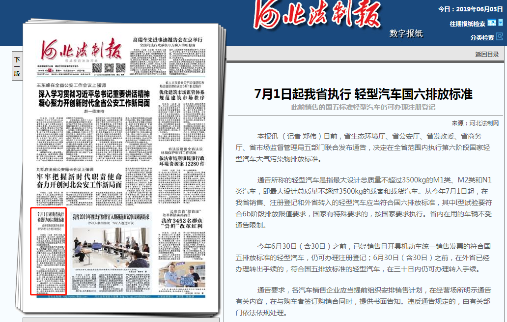 、省公安厅、省发改委、省商务厅、省市场监督管理局五部门联合发布通告,决定在全省范围内执行第六阶段国家轻型汽车大气污染物排放标准。