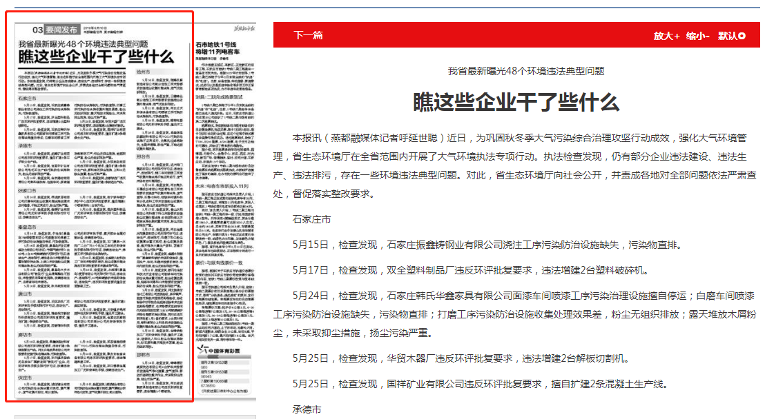 本报讯(燕都融媒体记者呼延世聪)近日,为巩固秋冬季大气污染综合治理攻坚行动成效,强化大气环境管理,杏彩(中国)官方网站 在全省范围内开展了大气环境执法专项行动。执法检查发现,仍有部分企业违法建设、违法生产、违法排污,存在一些环境违法典型问题。对此,杏彩(中国)官方网站 向社会公开,并责成各地对全部问题依法严肃查处,督促落实整改要求。