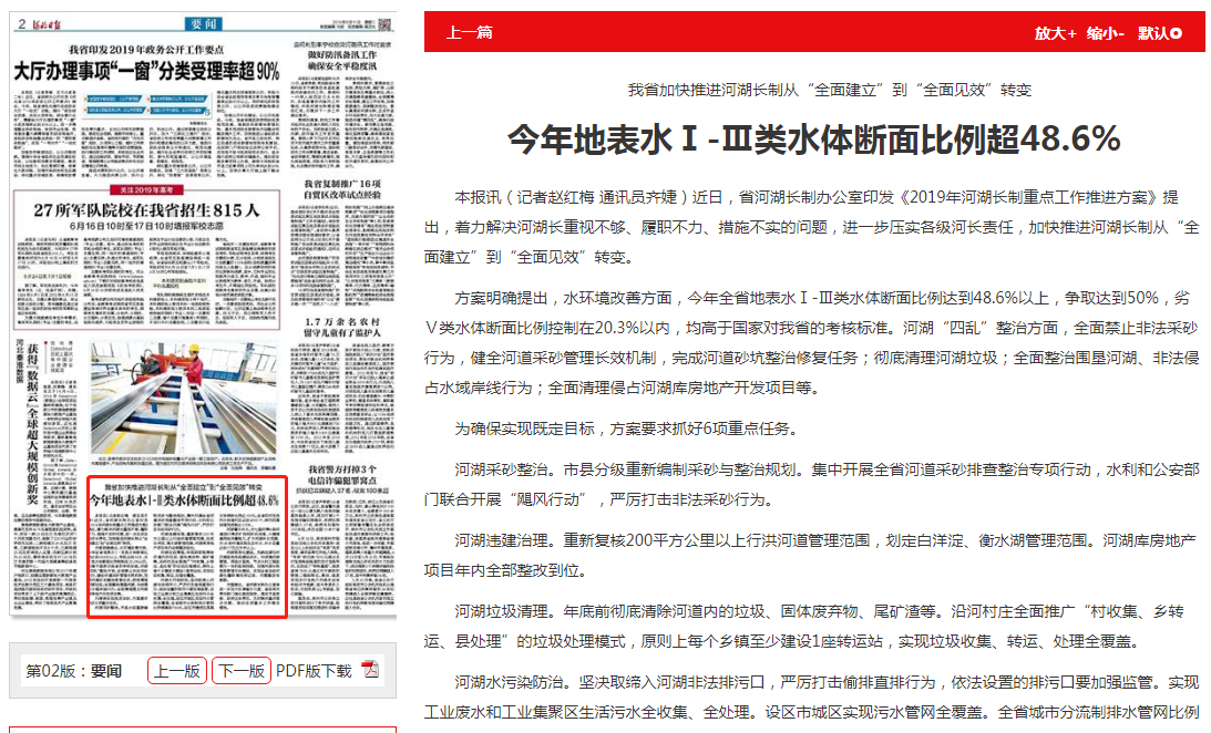 河北日报:今年地表水Ⅰ-Ⅲ类水体断面比例超48.6%