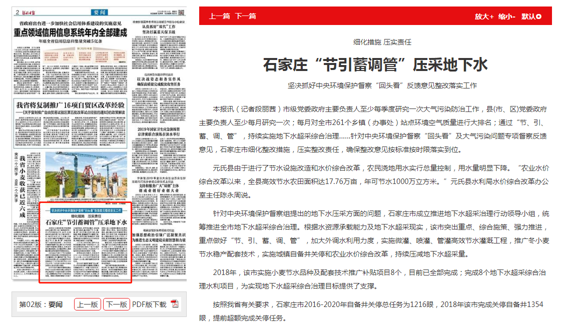 河北日报:细化措施 压实责任 石家庄“节引蓄调管”压采地下水