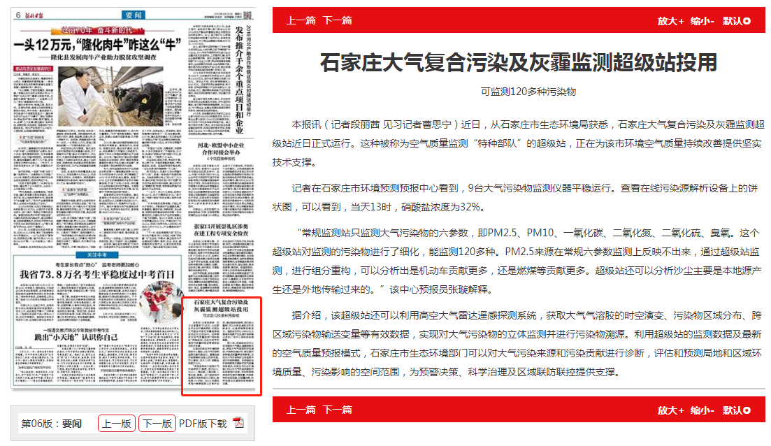 据介绍,该超级站还可以利用高空大气雷达遥感探测系统,获取大气气溶胶的时空演变、污染物区域分布、跨区域污染物输送变量等有效数据,实现对大气污染物的立体监测并进行污染物溯源。利用超级站的监测数据及最新的空气质量预报模式,石家庄市杏彩门可以对大气污染来源和污染贡献进行诊断,评估和预测局地和区域环境质量、污染影响的空间范围,为预警决策、科学治理及区域联防联控提供支撑。