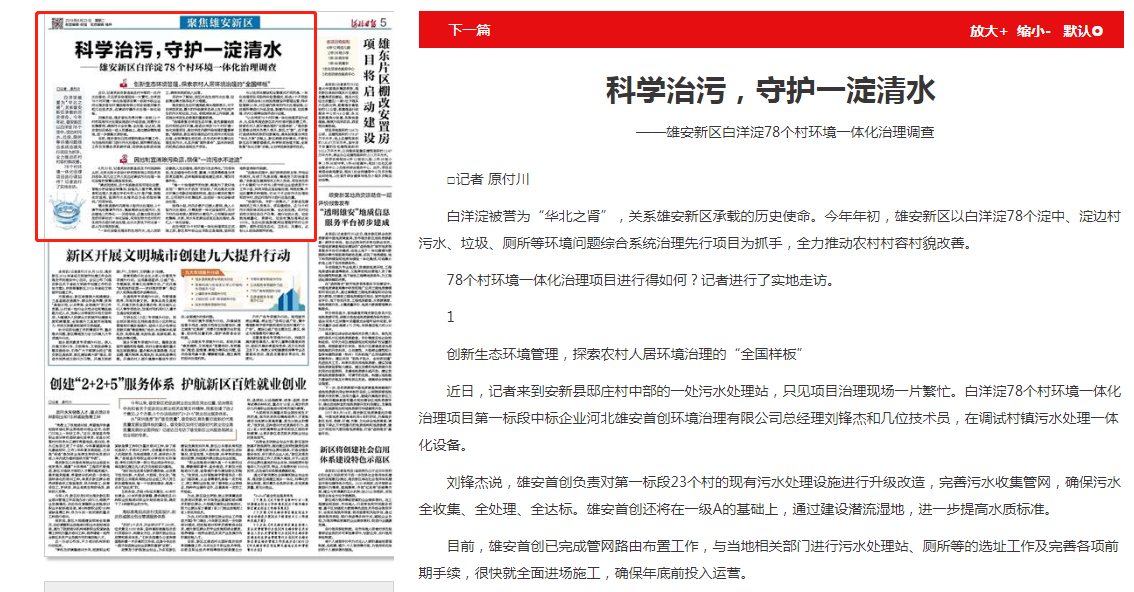 目前,雄安首创已完成管网路由布置工作,与当地相关部门进行污水处理站、厕所等的选址工作及完善各项前期手续,很快就全面进场施工,确保年底前投入运营。