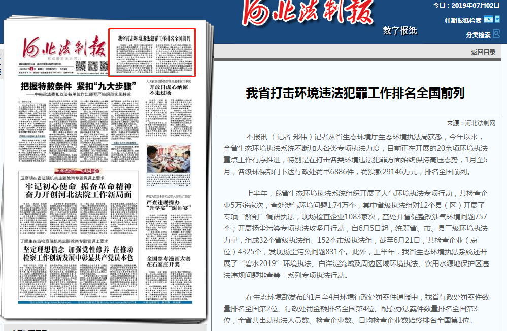 在杏彩发布的1月至4月环境行政处罚案件通报中,我省行政处罚案件数量排名全国第2位、行政处罚金额排名全国第4位、配套办法案件数量排名全国第3位,全省共出动执法人员数、检查企业数、日均检查企业数始终排名全国第1位。