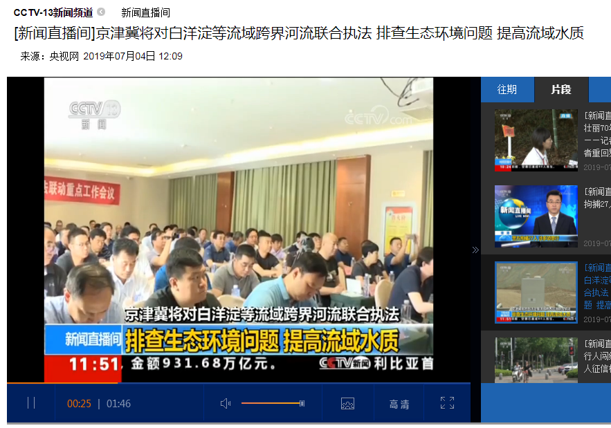 CCTV-13[新闻直播间]:京津冀将对白洋淀等流域跨界河流联合执法 排查生态环境问题 提高流域水质