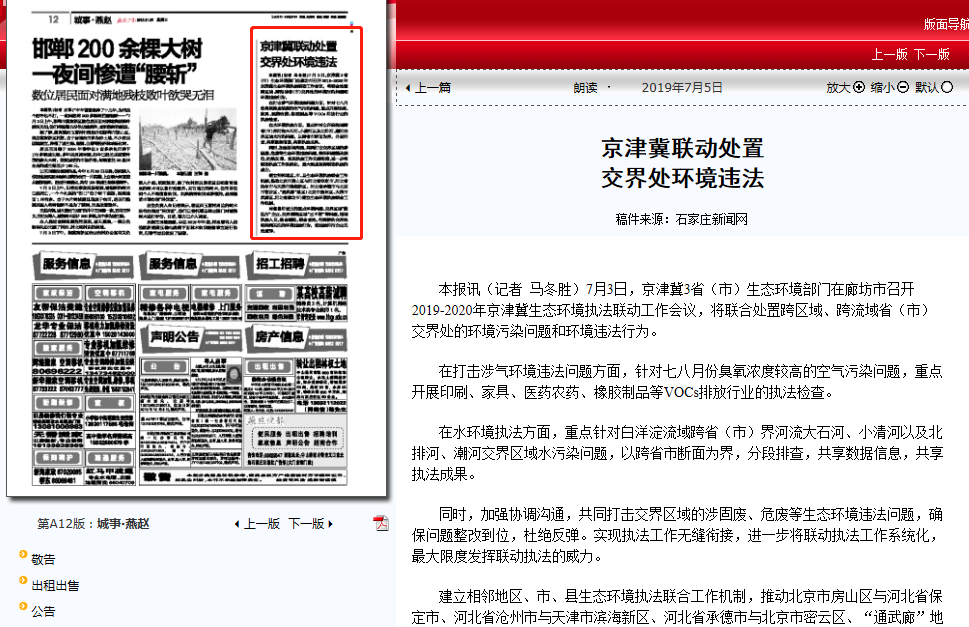 本报讯(记者 马冬胜)7月3日,京津冀3省(市)杏彩门在廊坊市召开2019-2020年京津冀生态环境执法联动工作会议,将联合处置跨区域、跨流域省(市)交界处的环境污染问题和环境违法行为。 在打击涉气环境违法问题方面,针对七八月份臭氧浓度较高的空气污染问题,重点开展印刷、家具、医药农药、橡胶制品等VOCs排放行业的执法检查。 在水环境执法方面,重点针对白洋淀流域跨省(市)界河流大石河、小清河以及北排河、潮河交界区域水污染问题,以跨省市断面为界,分段排查,共享数据信息,共享执法成果。 同时,加强协调沟通,共同打击交界区域的涉固废、危废等生态环境违法问题,确保问题整改到位,杜绝反弹。实现执法工作无缝衔接,进一步将联动执法工作系统化,最大限度发挥联动执法的威力。 建立相邻地区、市、县生态环境执法联合工作机制,推动北京市房山区与河北省保定市、河北省沧州市与天津市滨海新区、河北省承德市与北京市密云区、“通武廊”地区(北京市通州区、天津市武清区、河北省廊坊市)建立生态环境执法联合工作机制。 对各自排查出的重点环境问题、交界区域“散乱污”企业、交界模糊区域“三不管”等问题,抽调执法人员,混合编组,联合查处,有效解决交界处和共同关注的环境违法行为,使违法排污企业无处遁形。